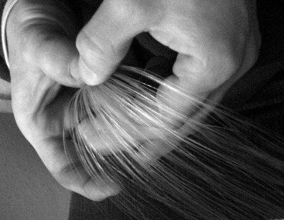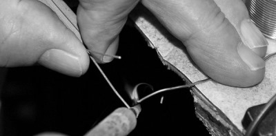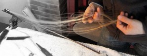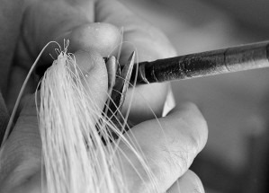 Reméchage d’un archet de violon.