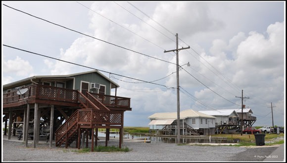 Cocodrie-MaisonCertains endroits sont à plus de 3m au dessous du niveau de la mer, ce qui encourage encore plus les habitants à des précautions toujours plus ingénieuses comme parfois même le haubanage des maisons (à ne pas confondre avec les câbles électriques).