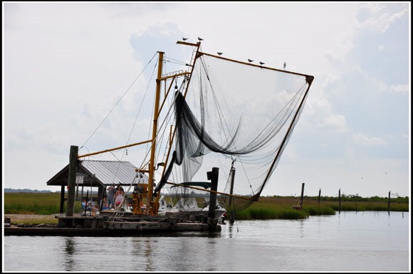 Pêche à la crevette, à l’écrevisse mais aussi au « blue crabe », étrange bestiole aux pattes bleues.