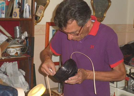 Comme tout atelier d’artiste celui-ci semble un peu désordonné.  Des chutes de pièces de cuir semblent se languir sur quelques étagères poussiéreuses. Des gouges sur un coin d’établi attendent l’inspiration du maître. Ci et là des croquis, dessins, esquisses inachevées, des affiches de théâtre aussi décorent les murs, attestant leurs gloires passées.