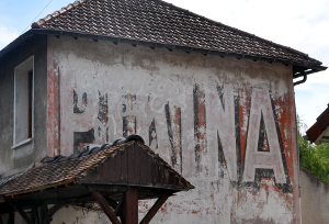 « Pikina » le vieil apéritif de chez nous et « Motul », lubrifiants américains, pour moteurs, cohabitent sur les murs délabrés.