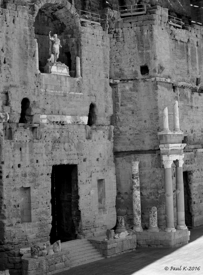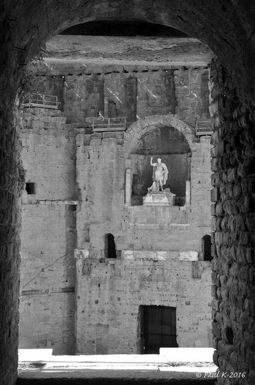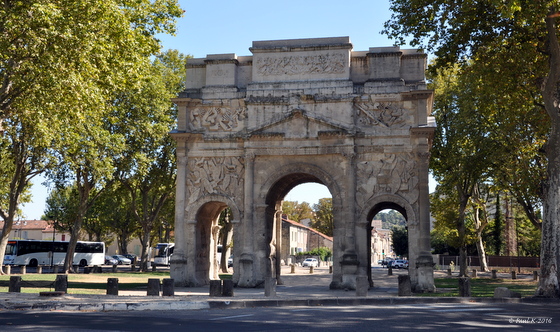 La longue route nationale nous conduit directement à Orange avec, à l’entrée de la ville, son non moins célèbre Arc de Triomphe.