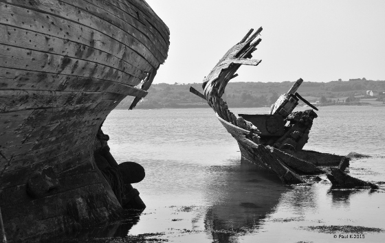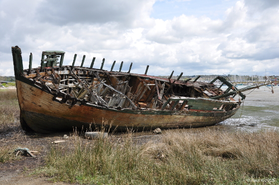 Dans ces cimetières marins, que l’on trouve surtout en Bretagne, s’entassent les carcasses des bateaux déjà morts. Témoins silencieux d’un passé révolu, époque où la pêche et la marine représentaient une activité prépondérante sur nos côtes, j’ai gardé le plaisir de contempler ces formes élégantes dans lesquelles, enfants, nous nous amusions du temps qui passait et puisions dans nos imaginaires les contes des rivages lointains de tant de mythes marins.