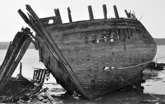 Dans ces cimetières marins, que l’on trouve surtout en Bretagne, s’entassent les carcasses des bateaux déjà morts. Témoins silencieux d’un passé révolu, époque où la pêche et la marine représentaient une activité prépondérante sur nos côtes, j’ai gardé le plaisir de contempler ces formes élégantes dans lesquelles, enfants, nous nous amusions du temps qui passait et puisions dans nos imaginaires les contes des rivages lointains de tant de mythes marins.