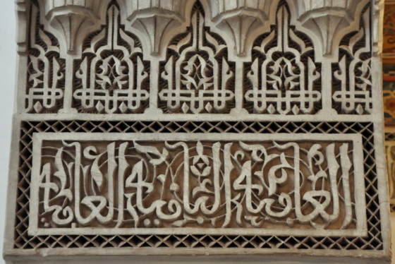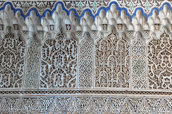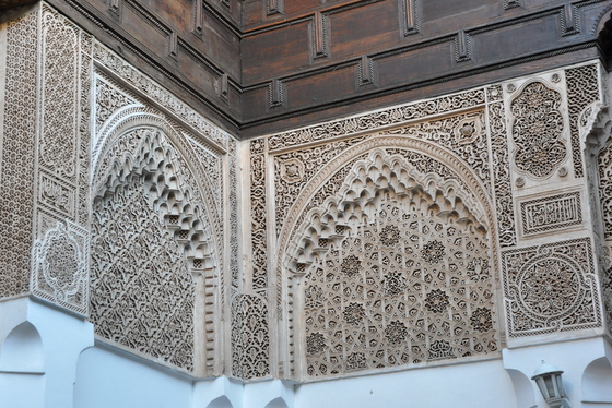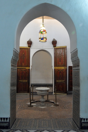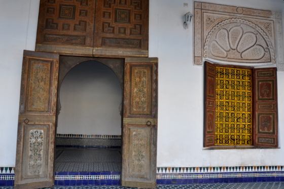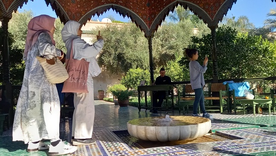 Que de marbres sculptés ! Ils proviendraient, parait-il, d’échanges commerciaux avec l’Italie. Construit dans les années 1880, pour le grand vizir Ba Ahmed, ce palais dont les jardins s’étendent sur une dizaine d’hectares, aurait été, un temps, la résidence du Maréchal Lyautey. Un parcours agréable, parsemé de cours intérieures richement décorées et colorées, de jardins encore fleuris en cette saison hivernale, mais que de monde !