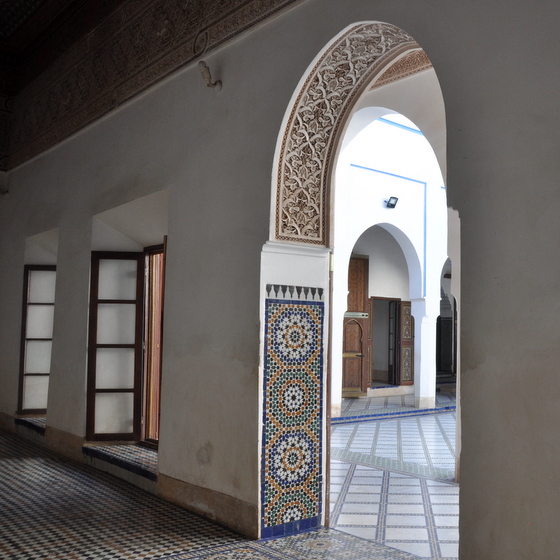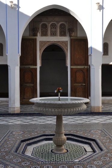 Sortir de la médina par le sud en empruntant ses ruelles étroites pour se diriger vers la place des Ferblantiers permet d’accéder rapidement au Palais de la Bahia, chef d’œuvre de l’art marocain, « Bahia » signifierait « joli » ou « merveilleux ».