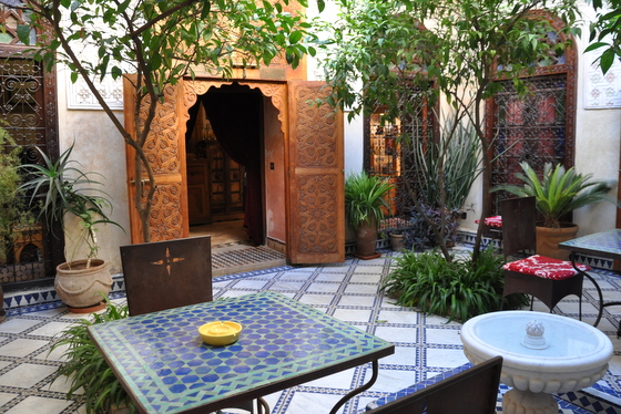 La visite commence au premier étage d’un riad discret du nord de la médina.