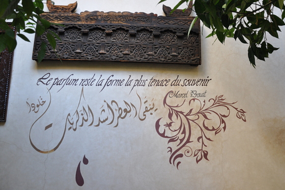 Avant de s’évaporer dans la nature, avec un regret non dissimulé de ne pouvoir emporter avec soi les arômes éphémères, une petite visite s’impose dans le petit boudoir en forme d’alcôve dont seul l’orient a le secret.