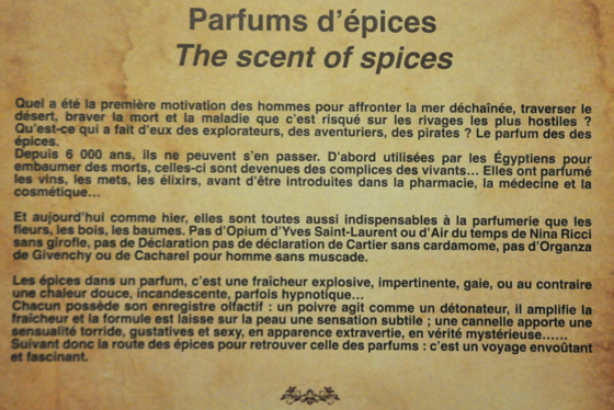 Passé ce voyage initiatique, le rez-de-chaussée propose à présent au visiteur d’exercer ses talents de « nez » en passant par le « bar à parfums » où, accompagné d’une charmante hôtesse chacun pourra découvrir les subtilités cachées des extraits naturels de bases qui servent à la composition des plus grands parfums aujourd’hui commercialisés.
