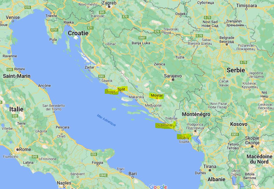 Suite au découpage de l’ex-Yougoslavie, il est parfois difficile de se situer géographiquement. En effet pour nous rendre à Split en partant de Ston, il nous faudra traverser la presqu’île de Peljesac afin d’éviter la ville de Neum située en Bosnie-Herzegovine.