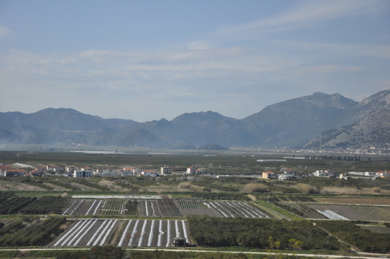 Direction à présent la petite ville de Ston où nous déjeunerons avec un lance-pierres. Cette cité fortifiée, protégée par une longue muraille, dont l’intérêt stratégique était dévolu à la protection des salines de la baie de Mali Ston, est considérée en Croatie, comme la muraille de Chine de l’Adriatique. On en est loin cependant. Quelques photos prises à la sauvette à travers les vitres du car me laissent le goût amer d’un passage bâclé. Cette région, vantée pour ses marais salants ne me laissera pas un souvenir particulièrement marquant si ce n’est ceux des sublimes paysages, enclavés entre mer et montagnes.