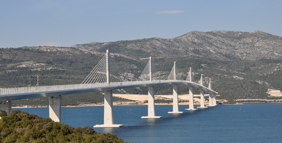 Passées les vastes plaines de cultures maraichères, nous emprunterons le pont à hauban de Peljesac 2374 m (1). Il enjambe la baie de Mali Ston et nous permettra de poursuivre notre route le long de la côte adriatique d’où nous pourrons contempler plusieurs petits ports avant d’atteindre notre prochaine destination … mais cela sera pour le prochain billet.