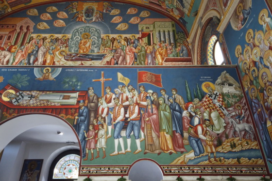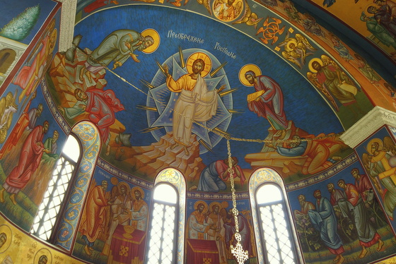 La cathédrale orthodoxe reconnaissable à la luxuriance de ses décors de marbres colorés tranche avec l’austérité de l’influence soviétique du mémorial de la seconde guerre mondiale.