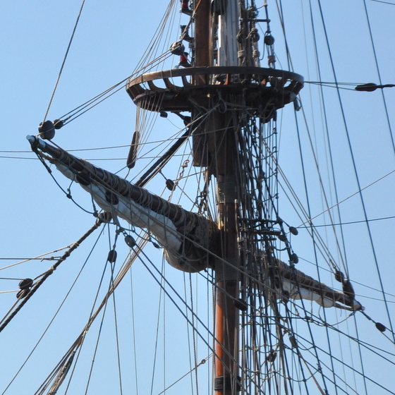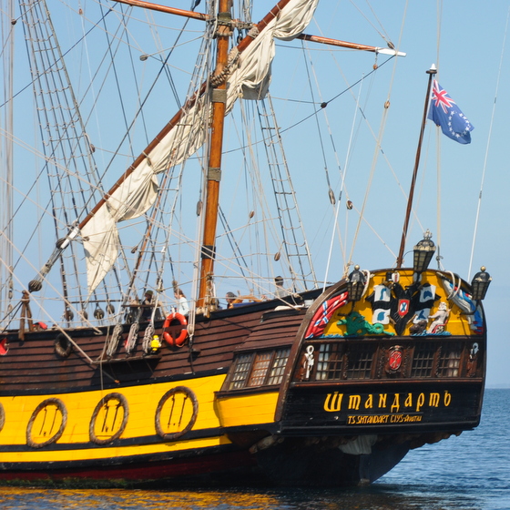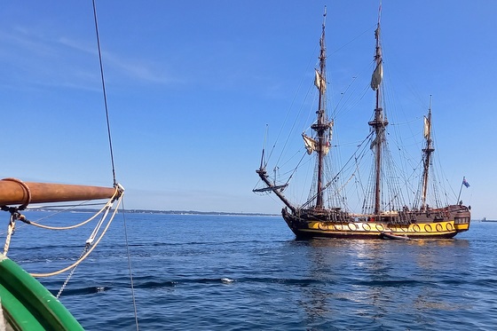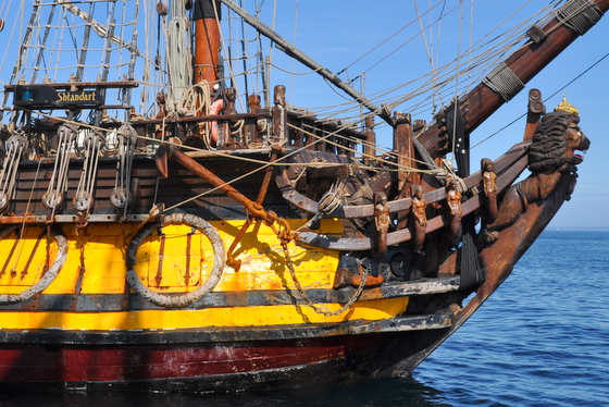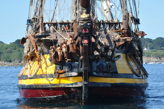 Symbole des conquêtes guerrières, comme aux temps des vikings, cette réplique d’une frégate russe du XVIII siècle est aujourd’hui mise au ban des nations européennes depuis le conflit russo-ukrainien. Naviguant de port en port, sans pouvoir accoster, sa présence ici symbolise l’errance du voyage et la liberté que la mer apporte aux hommes et aux poètes assoiffés de conquêtes ou d’horizons lointains.