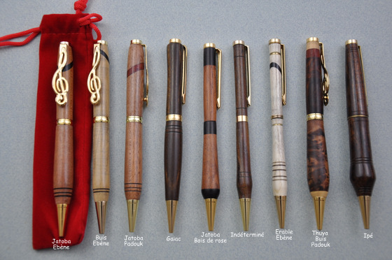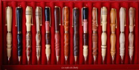 Alors, tant qu’à rester dans le bois et puisqu’il est question de notes, je vous présente ma dernière collection de tournage de stylos en bois .. faits mains.