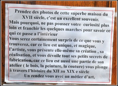 D’un âge à présent avancé, ce qui ne retire en rien un regard pétillant et espiègle, Carolyne Morel est de ces personnes qui rayonnent d’enthousiasme lorsqu’elles vous parlent de leur métier. Couturière, elle l’est depuis 1948, date à laquelle elle passa avec succès son C.A.P. Depuis elle ne compte plus les milliers de costumes qu’elle a imaginés, confectionnés, dessinés. Enoncer ici sa biographie serait mal venu, mais elle se fera un plaisir de vous communiquer son CV impressionnant lorsque vous déciderez de lui rendre visite car je suis certain que si vous prenez le temps de lire ces quelques lignes votre prochaine destination de balade sera pour Moncontour.