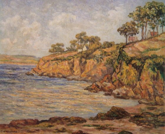 Première peinture à m’avoir inspiré, cette falaise du Ris qui longe la plage, représentée par Ernest de Chamaillard (1862-1930) né à Quimper, élève de Gauguin.