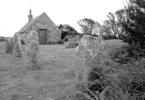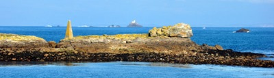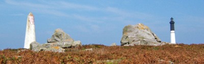 L’amer de Plas ar Scoul qui borne avec le phare Goulenez l’ouest de l’île.