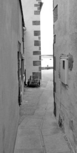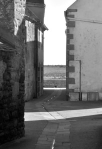 Paradoxe d’une île si horizontale, quelques mètres seulement au dessus du niveau de la mer, les ruelles sont comme des lucarnes verticales laissant filtrer le clair obscur.