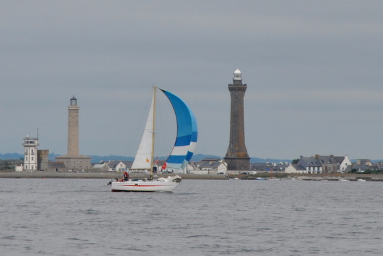 Le temps était plutôt frais en cette matinée d’août, un léger crachin venait même agrémenter le tableau d’un bel été breton. Les premières manœuvres passées pour sortir du port, le moment est venu de hisser voile, foc et trinquette et d’ajuster le cap au mieux des courants marins. Direction la pointe de Penmarc’h.
