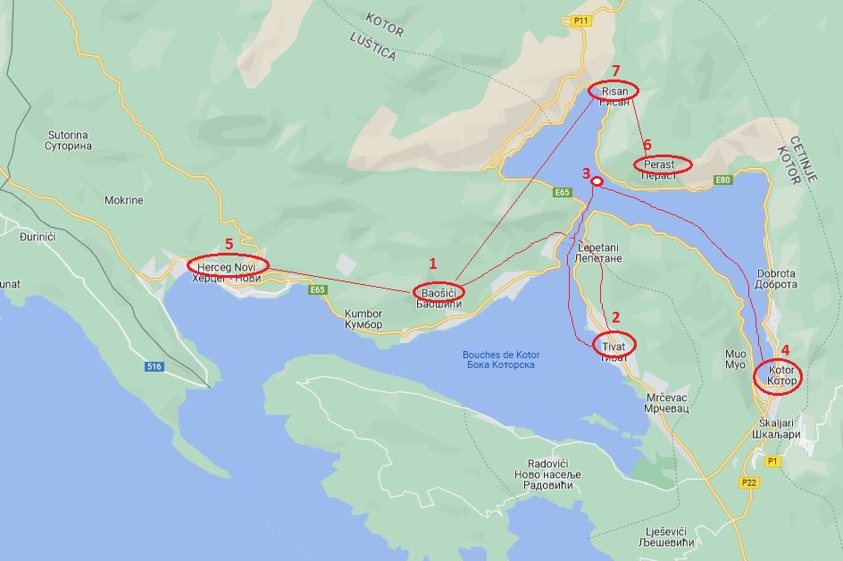Après avoir traversé le détroit de Verige entre Kamenari et Lepenane, en empruntant le ferry, nous ferons une halte à Tivat (2). L’ancienne base navale yougoslave, achetée par un milliardaire américain porte désormais le nom de Porto Montenegro. Haut lieu d’attraction touristique, il y concentre tous les codes de la jet set branchée.
