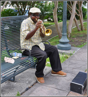 En nous promenant dans le Faubourg Marigny, considéré comme le quartier des artistes, nous poursuivrons nos rencontres musicales. Notre attention sera attirée par le son d’une guitare.